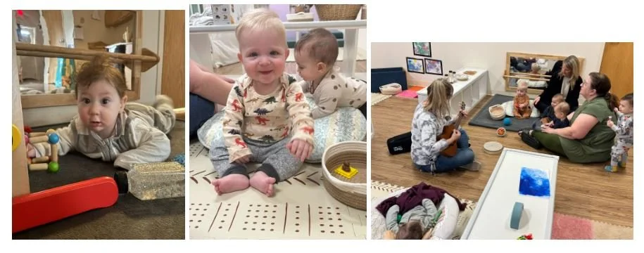 We will continue supporting development through purposeful work and play. We will focus on fine motor skills by using our pincer grasp to remove rhythm scarves from an oball and by picking up small snacks like cheerios and peas during lunch. We will also work on gross motor skills as we practice sitting independently and climbing on the nugget couch.