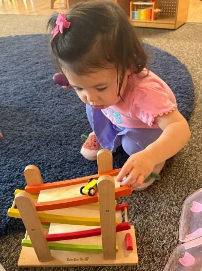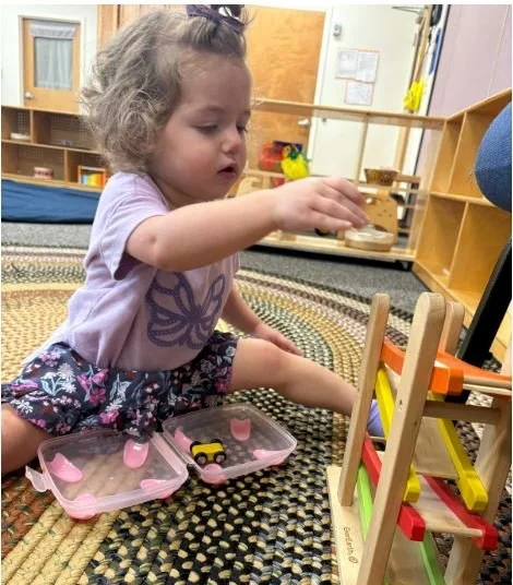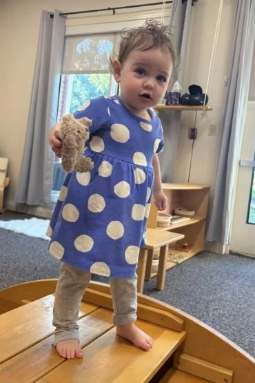 In our Young Toddler classroom, we change diapers adjacent to the toilet which leads to curiosity and interest in sitting. We encourage the children to “push down” and “pull up” their pants, with assistance during this time, promoting independence and body autonomy. We have some friends who opt to sit on the toilet during diaper changes throughout the day. This proximity and familiarity with toilet learning will lead to more successful, and likely sooner, diaper-free time.